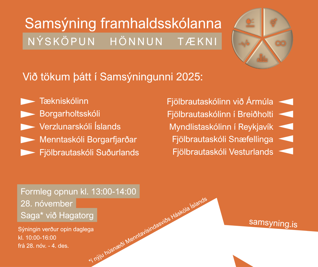 Athugið að þú þarft ekki að vera þátttakandi í Samsýningunni til að geta fengið heimsókn eða Teams. Við bjóðum upp á þessa þjónustu, gjaldfrjálst, fyrir alla kennara framhaldskóla sem hug hafa á eða eru með einhverja nýsköpunar- og/eða frumkvöðlaáfanga.